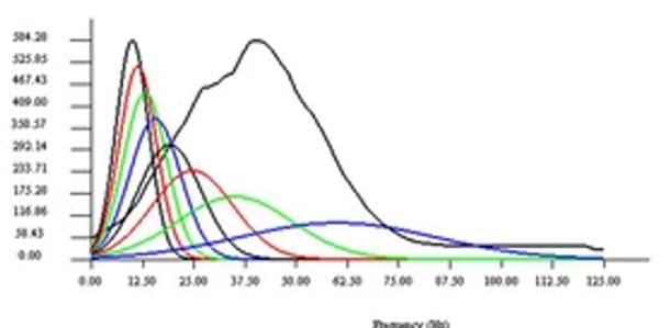 Another way to optimize the frequencies for a color blend is to visually compare the different frequency magnitude responses in the Data Preview window of the Frequency Decomposition tool.